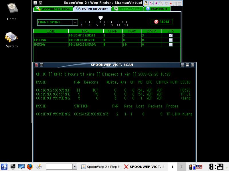 第一步:選擇開始-backtrack->radio network analysis->80211->all->spoonwep2,跟 windows 操作一樣