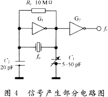 本設(shè)計(jì)中參考頻率源選用COMS石英晶體多諧振蕩器產(chǎn)生2 MHz的矩形脈沖信號(hào),電路如圖4所示。