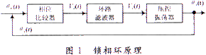 鎖相環(huán)是一種利用外部輸入的參考信號(hào)控制環(huán)路內(nèi)部振蕩信號(hào)反饋控制電路。他的被控制量是相位,被控對(duì)象是壓控振蕩器。如圖1所示,如果鎖相環(huán)路中壓控振蕩器的輸出信號(hào)頻率發(fā)生變化,則輸入到相位比較器的信號(hào)相位θv(t)和θR(t)必然會(huì)不同,使相位比較器輸出一個(gè)與相位誤差成比例的誤差電壓Vd(t),經(jīng)環(huán)路濾波器輸出一個(gè)緩慢變化的直流電壓Vc(t),來(lái)控制壓控振蕩器輸出信號(hào)的相位,使輸入和輸出相位差減小,直到兩信號(hào)之間的相位差等于常數(shù)。此時(shí),壓控振蕩器的輸出信號(hào)頻率和輸入信號(hào)頻率相等,且環(huán)路處于鎖定狀態(tài)。