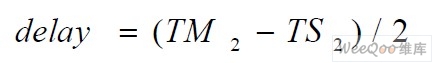 可由該時間偏差來校正從時鐘。但由此計(jì)算出來的結(jié)果仍然包含有時間信息在網(wǎng)絡(luò)中傳輸造成的延時,因此還需要進(jìn)行延時校正。