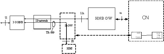 其中,HNB集成了Node B和RNC的主要功能。HNB GW主要是為HNB和CN之間的連接提供匯聚/分發(fā)功能以及負(fù)責(zé)對HNB的注冊管理等。SeGW安全網(wǎng)關(guān)提供HNB到HMS和HNB GW的安全接入、HNB鑒權(quán)等功能。HMS主要功能是為HNB提供管理和參數(shù)配置。
