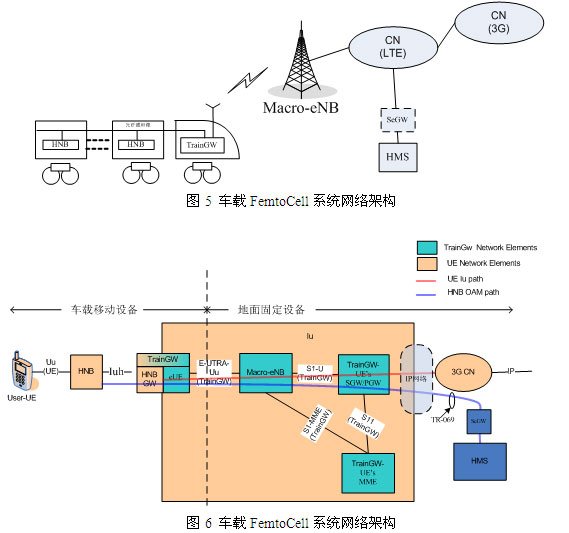 本文將要介紹的車載FemtoCell系統(tǒng)網(wǎng)絡(luò)架構(gòu)如圖5 和圖6 所示:
